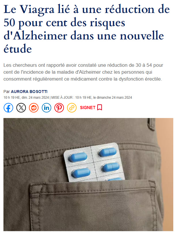 Une étude récente révèle que le Viagra, connu pour traiter la dysfonction érectile, diminue de 50% le risque de maladie d'Alzheimer. Ce bénéfice serait dû au sildénafil, son ingrédient actif, également employé contre l'hypertension artérielle pulmonaire. La recherche, menée par la Cleveland Clinic et publiée dans le Journal of Alzheimer's Disease, souligne une diminution de 30 à 54% des risques chez les consommateurs réguliers. Aux États-Unis, l'Alzheimer représente une cause majeure de décès, avec plus de 6,7 millions de personnes affectées. L'étude utilise des modèles informatiques pour analyser d'importantes bases de données médicales.