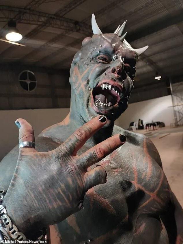 Michel 'Diabao' Praddo, 49 ans, originaire de la côte de Praia Grande près de São Paulo au Brésil, s'est récemment fait retirer trois doigts pour transformer ses mains en griffes. Après avoir hésité en raison de craintes pour sa carrière de tatoueur, il s'est adapté et continue à tatouer presque normalement malgré des sensations fantômes. Praddo détient le record du monde Guinness pour le plus grand nombre d'implants 'cornes' sous-cutanés sur la tête. Avec plus de 60 procédures de modification corporelle à son actif et 85% de son corps tatoué, Praddo a des projets pour d'autres transformations, soutenu par sa femme, Carol Praddo, elle-même fortement modifiée.
