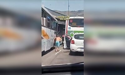 À Rio de Janeiro, un automobiliste furieux quitte son véhicule sur un viaduc pour poursuivre un motocycliste... à pied et en tongs! La suite de la vidéo, elle, est tout simplement inexplicable.
