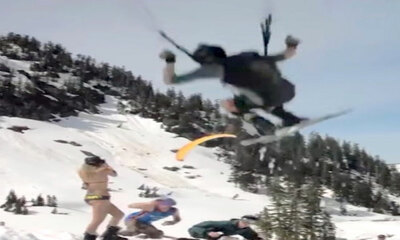 Aux États-Unis, un speed rider était en train d’effectuer une descente lorsqu’il a frôlé une fille en bikini. Heureusement, la collision n’a pas eu lieu car à cette vitesse, le choc aurait été violent pour la fille. h...