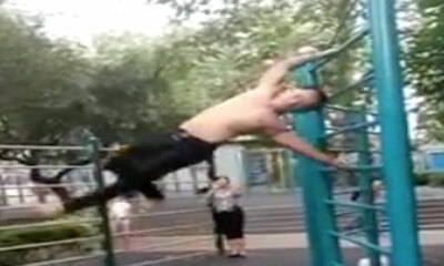 Dans un parc à Hong Kong en Chine, un homme fait la figure le drapeau sur des barres horizontales. Il va ensuite va danser sur la musique "F.O.O.L - Krieg?" et nous donner l'impression qu’il flotte dans les airs. ht...