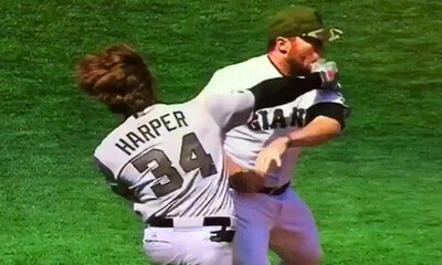 Ce lundi 29 mai 2017 lors du match de MLB entre les San Francisco Giants et les Washington Nationals, Le lanceur Hunter Strickland a envoyé une balle à 157 km/h sur le batteur Bryce Harper qui a touché sa hanche. Le spor...