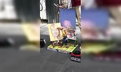 Un artiste de rue mexicain crée des chefs-d'œuvre en même temps qu'il manipule une marionnette, surpassant les capacités d'un individu moyen.