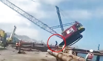 Au port d'Antofagasta, au nord du Chili, un ouvrier a vécu un moment effrayant mardi quand une immense grue s'est effondrée. La scène, filmée par un collègue, montre la grue en train de soulever une grande structure avan...