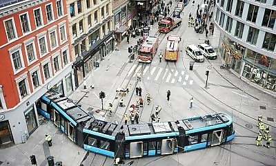 Un tramway est sorti de sa voie et a violemment percuté la vitrine d’un magasin dans une des rues les plus fréquentées du centre-ville d’Oslo. Les images montrent le véhicule quitter brusquement sa trajectoire pour heurt...