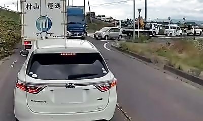 Quitte à détruire sa voiture contre un camion, cet automobiliste a la priorité et compte bien passer !