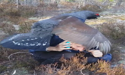 Dans un bois en Norvège, alors qu'un homme est au téléphone, il vient se faire attaquer par un Grand Tétras mâle. L'oiseau est monté sur lui et a donné l'impression d'essayer de vouloir lui faire du sexe qui a beaucoup r...