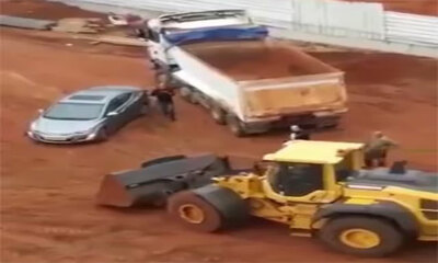 Sur un chantier en Israël, un conducteur de chargeur sur pneus s'en prend à un agent de recouvrement d'une manière radicale. Énervé par l'agent de recouvrement, il grimpe au volant de engin et vient foncer droit sur la v...