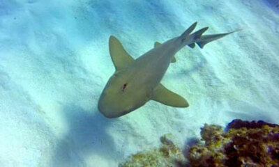 Lors d'une plongée dans les iles Caïmans, un instructeur tombe sur un petit requin qui a un couteau de pêche planté au sommet de sa gueule. L'instructeur décide lors de s’approcher par-derrière l’animal pour venir retire...