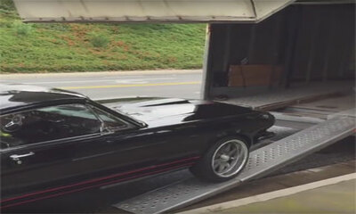 Installer une voiture dans la remorque d'un camion pour la transporter peut s'avérer être un moment délicat. Et ce fus le cas pour notre ami Régis qui lors du transport d'une Mustang de 1965 d'une valeur qui peut aller d...