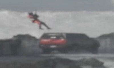 Au volant de son 4x4 Nissan, un conducteur roulait lentement sur la jetée tandis que de violentes vagues de plusieurs mètres de hauteur venaient s'écraser de chaque coté de la jetée. Après quelques instants, le conducteu...