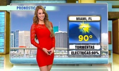 Après la policière la plus sexy au monde, la camionneuse la plus sexy au monde, la cycliste la plus sexy au monde et la cuisinière la plus sexy au monde, voici aujourd'hui la présentatrice où Miss Météo la plus sexy au m...