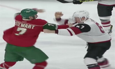 Lors de la rencontre de hockey sur glace entre l'équipe des "Arizona Coyotes" et celles des "Minnesota Wild", les joueurs Lawson Crouse et Chris Stewart se sont battus au milieu de la piste comme le permet le règlement. ...