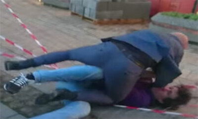A travers cette vidéo, on peut voir un jeune provoquer volontairement la chute d'une femme qui se trouve sur son vélo. Ce merdeux avec son ballon attend que l'agent de police arrive à sa hauteur pour ensuite jeter son ba...
