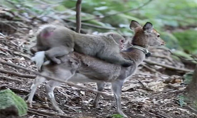 Des images tournées en novembre 2015 sur l'île japonaise de Yakushima par une équipe de scientifiques français montrent un macaque essayer de s'accoupler avec une biche Sika. A savoir, les macaques et les cerfs Sika vive...