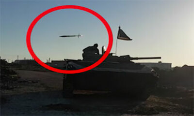 En Syrie, un soldat qui se trouve sur un char de combat a bien faillit se manger une roquette de l'organisation terroriste État islamique. On peut voir le projectile passer juste au-dessus de sa tête qui venait juste de ...