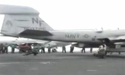 Sur un porte-avions, un technicien veut jouer avec le souffle du réacteur d'un avion au décollage. Cette scène postée en aout 2016 sur Youtube s'est passée il y a plus de 10 ans sur le porte-avions USS Kitty Hawk. Alors ...
