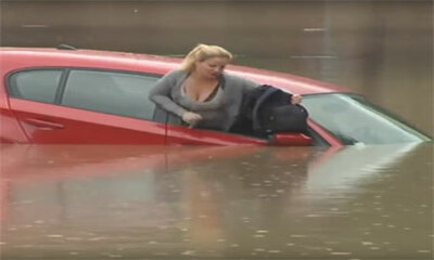 Ce lundi 28 novembre 2016 à Sagonte en Espagne, une automobiliste a essayé de franchir une zone inondée et ce malgré les signalisations annonçant le danger. Rapidement, la voiture une BMW rouge a commencé à prendre l'eau...