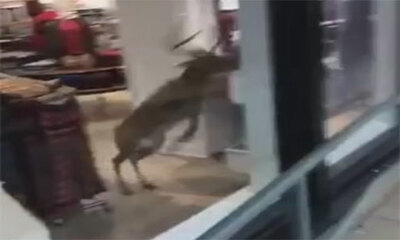 Ce jeudi 10 novembre 2016 à Stillwater dans l'Oklahoma, un cerf pris au piège dans une boutique American Eagle a décidé de sortir par la grande porte. Le cerf mâle pressé de quitter le magasin tel un homme durant les sol...