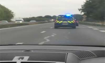 C'est épique, on sent toute la tension, à un moment ils ont fait une pointe à 95 km/h ! Le 14 octobre 2016 sur la RN12 près de Saint-Brieuc en Côtes-d'Armor, un automobiliste est témoin d'une course-poursuite entre des g...