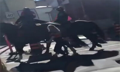 Une fille ivre se lance le pari de courir vers un cheval de la policier pour le frapper pour ensuite revenir vers ses copines. Mais alors qu'elle s'approche du cheval puis le cogne, ce dernier vient répliquer en donnant ...