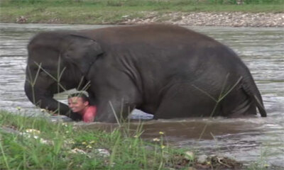 Tournée dans la réserve Elephant Nature Park en Thaïlande, vidéo nous montre un éléphant nommé Kham Lha qui vient sauver un de ses soigneurs qui simule une noyade. De suite, l'éléphant se précipite à l'eau pour venir sau...