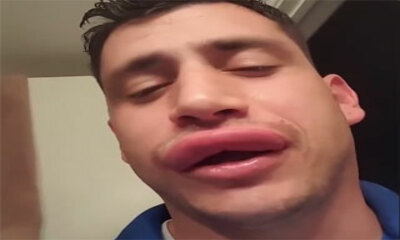 Piqué à la lèvre supérieure à deux reprises par des guêpes jaunes, il décide de nous montrer le résultat du gonflement de sa lèvre. Il se retrouve avec une lèvre supérieur digne de Kim Kardarshian qui viendrait de se fai...