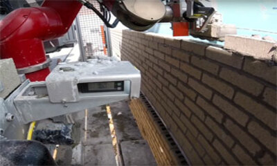 SAM100 est le premier robot maçon commercialisé par une société américaine qui est capable de monter un mur de briques. On peut le voir en action sur un chantier à Rolla dans le Missouri alors qu'il attraper des briques,...