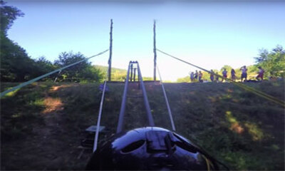 Les jeunes de l'association RadCow qui se situe dans le Cantal, ont réalisé et fabriqué au bord d'un étang une arbalète humaine.Cette énorme arbalète permet d'éjecter une personne sur un chariot jusqu'à 15 mètres, avec u...