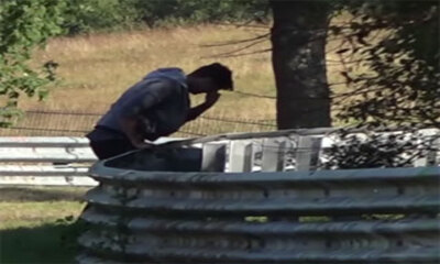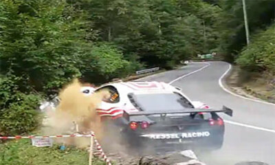 Lors du rallye Cupa Campulung Muscel en Roumanie, le pilote de cette Ferrari a freiné trop tardivement et trop brusquement à l'arrivée d'un virage. Bloquant ses roues, le bolide est parti directement dans un muret en pie...