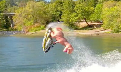 Le rider Mark Gomez et champion en Jet-ski s'est déguisé en dinosaure pour réaliser une vidéo 100% fun et 100% sport. On peut le voir avec son engin et son déguisement de T-Rex faire durant quelques minutes des tricks et...