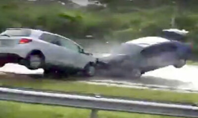 Tout en conduisant sur l'autoroute à Puerto Rico, ce conducteur a remarqué qu'une voiture roulait dans le mauvais sens de circulation de l'autre côté de la route. A pleine vitesse, deux voitures sont entrés en collision ...