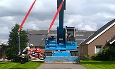 Aux Pays-Bas, des amis qui participaient à une journée barbecue et qui avaient trop bu ont décidé de trouver un nouvel amusement en créant une balançoire pour moto. Sur ces vidéos, on peut un homme sur une Honda VSR 750 ...