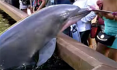 Ce samedi 6 août au SeaWorld d'Orlando, un dauphin a arraché des mains d'une femme un iPad. Alors qu'elle était en train de prendre des photos et filmer avec (la honte) son Ipad au bord d'un bassin, un dauphin s'est appr...