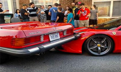 En Virginie aux États-Unis, une femme au volant d'une Mercedes-Benz 380SL décapotable veut se garer et tente un créneau. Mais cette dernière va surtout réussi à accrocher la Ferrari pour carrément grimper dessus. En fait...