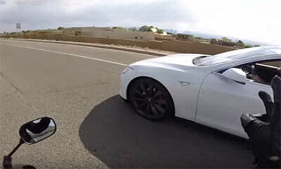 Sur une route dégagée aux États-Unis, le motard Breaking Moto fait la rencontre d'un conducteur au volant d'une Tesla Model S et lui propose de l'affronter au départ arrêté face à sa Kawasaki 600 ZX-6R. Vous allez consta...