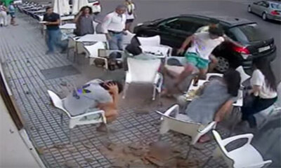 En Amérique du Sud, un accident rare à eu lieu faisant plusieurs blessés à la terrasse d'un café. Un balcon a commencé à s'effondrer et des pierres sont venus chuter sur deux clients assis juste dessus. Sur cette vidéo, ...
