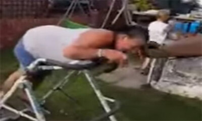 Monique a décidé de faire du sport sur une machine à moitié installée dans son jardin et va connaitre quelques difficultés à comprendre son fonctionnement. Grâce à sa démonstration, on va pouvoir se taper une bonne barre...