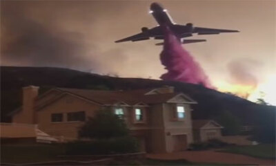 Comme chaque année aux Etats-unis et notamment en Californie, l’état connait de nombreux feux de forêt. A Santa Clarita en Californie, un avion est venue aider les pompiers en déversant du retardant près d’un quartier ré...