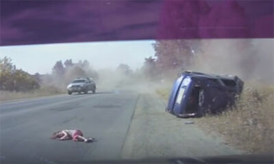 A Miass en Russie, le conducteur d'une Ford Fiesta qui roulait trop vite a perdu le contrôle de son véhicule pour venir finit sa course en tonneaux dans le fossé. Mais un enfant qui se trouvait dans le véhicule sans cein...