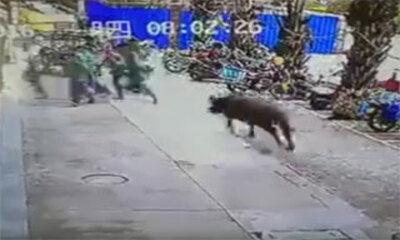 Des images provenant d’une caméra de sécurité où l'on peut voir dessus un taureau en colère foncer dans tous les piétons qu’il aperçoit. Bref, c'est le moment de savoir courir et de vitre prendre ses jambes à son coup. ...