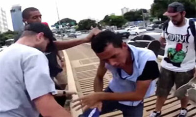Le skater Ademar Luquinhas caméra à la main poursuit et capture un voleur qui a tenté de fuir après avoir volé le téléphone d'une dame à Belo Horizonte. On peut le voir le voleur qui pour échapper au skateur lui donner l...