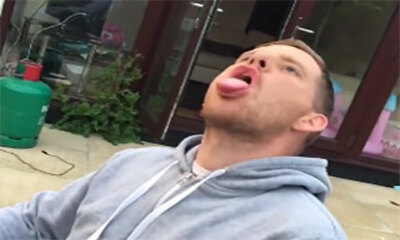 Assis sur sa terrasse, un homme va essayer d'attraper un gode plug avec que bouche. Pour cela, il va ouvrir grand la bouche et le dildo va rentrer parfaitement comme si avait trouver sa place. Allez, la prochaine on essa...