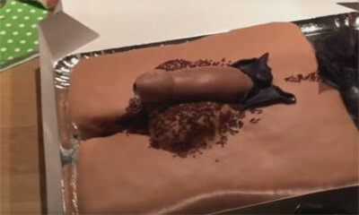 Pourquoi ? Un homme célèbre son anniversaire avec un gâteau en forme d'organes génitaux masculins couronnés d'un joli nœud papillon noir. Le petit plus est surement la bombe de chantilly astucieusement placée pour faire ...