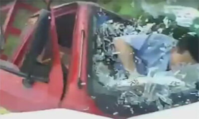 Des images fortes impressionnantes d'un homme qui au volant de son véhicule vient heurter de face à un autre véhicule. Sans ceinture de sécurité, le conducteur va être éjecté à l'avant pour venir taper avec sa tête le pa...