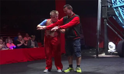 Ce lundi 9 mai 2016, un spectateur qui avait été au cirque en famille a été mis accidentellement KO pendant un numéro de clown sous le chapiteau du cirque Circus Zyair à Blackwood, au pays de Galles. Le clown Benjamin vo...