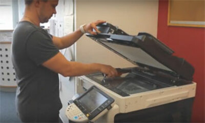 Une courte vidéo montant un homme qui dans un bureau se dirige avec une bouteille de bière à la main vers une photocopieuse. C'est alors qu'il pousse la bouteille pour la photocopier et comme par miracle, des bouteilles ...