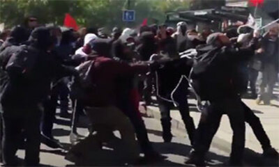 Le journaliste Simon Guillemin a filmé la brutalité de fonctionnaires de police lors d'une manifestation à Paris. Sur ces images, on peut voir à droite de Simon Guillemin, un gars cagoulé mettre du sérum physiologique à ...