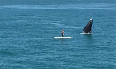 A Oceanside, en Californie, Aysean Beauchamp filmait un homme faisant du paddleboard lorsqu'une baleine a surgit pour faire un magnifique bond hors de l'eau. Le mammifère s'est ensuite dirigé au large alors que le paddle...