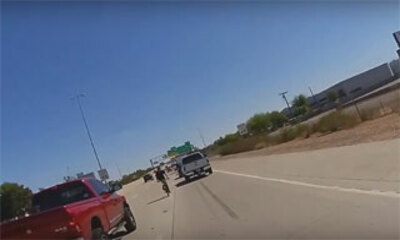 Voilà encore un exemple de stupidité d'un jeune homme qui s'amuse à faire du vélo en sens inverse sur une autoroute et qui se fait remonter les bretelles par un motard complètement ahuris. En même temps, le jeune mec est...